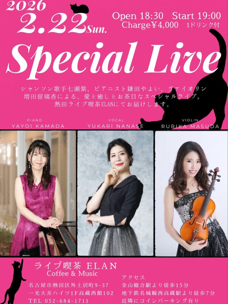 せゆかり)です。名古屋のカフェ・コン セール・エルムで歌っています。」 全国の高齢者施設や福祉施設に、シャン ソンをお届けしに行くのが夢です。